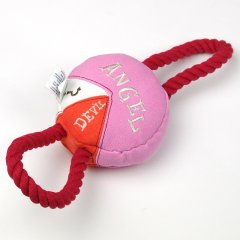 こちらは左右に丈夫なロープが付いていて、ワンちゃん(特にボステリ、フレブル!)が大好きなひっぱりっこに適しているタイプのおもちゃです。